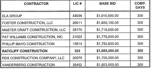 On motion by Imon Jones and seconded by William D. Garcie, it was carried to accept the low bid of Ratcliff Construction in the amount of $1,655,000.00.